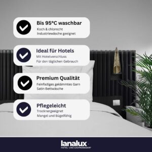 Unsere Hotelbettwäsche von LANALUX erfüllt höchste Hygienestandards und ist speziell für den intensiven Einsatz in der Hotellerie konzipiert. All unsere Bettbezüge verfügen über einen Hotelverschluss, sind bis zu 95 Grad waschbar, für industrielle Wäsche geeignet und mangel- sowie bügelfähig. So garantieren wir strapazierfähige Qualität, die auch den Anforderungen täglicher Nutzung gerecht wird.