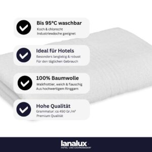 Alle unsere Handtücher von Lanalux sind aus hochwertiger 100% Baumwolle gefertigt und bieten Ihnen die Wahl zwischen Walk- und Zwirnfrottier – für erstklassigen Komfort und Langlebigkeit.